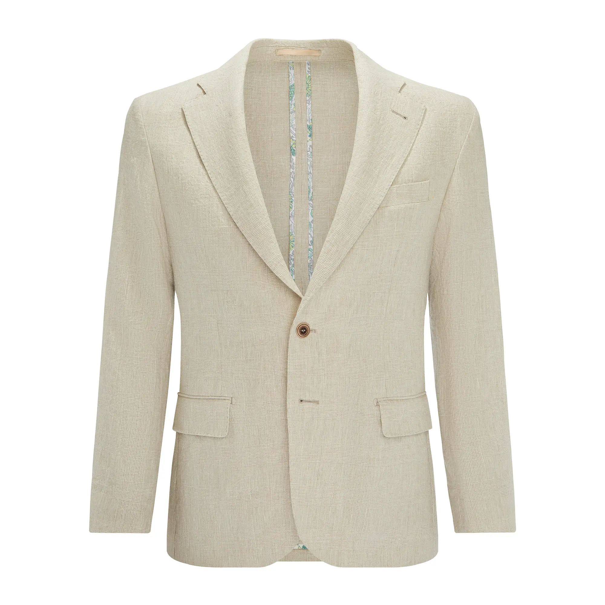 Lniany garnitur na miarę jasnobeżowa kratka Prince of Wales